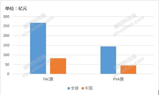 偏光片用光學(xué)膜方面,2018年全球TAC膜市場規(guī)模達(dá)267億元,國內(nèi)市場規(guī)模為82億元;全球PVA膜市場規(guī)模達(dá)144億元,國內(nèi)市場規(guī)模為45億元。