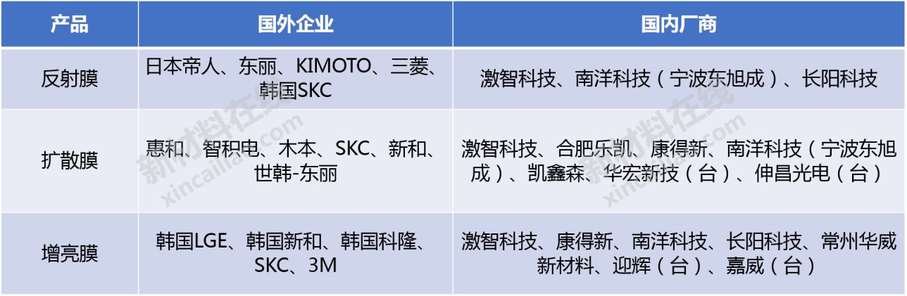 偏光片用光學(xué)膜重點(diǎn)企業(yè)