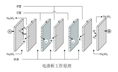 電滲析是一種電化學分離工藝,在外加直流電場的作用下,離子發生定向遷移,其次利用離子交換膜的選擇透過性,使溶液中的離子透過離子交換膜遷移到另一部分溶液中去,從而得到一股脫鹽液和濃縮液。