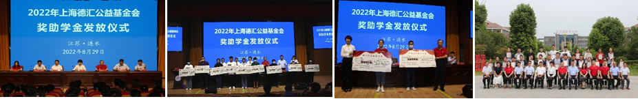 2022年8月29日上午,上海德匯公益基金會2022年度(第六屆)助學(xué)獎學(xué)頒證儀式在江蘇省淮安市漣水中學(xué)順利舉行,儀式上發(fā)放了年度助、獎學(xué)金。集團公司和漣水縣委、縣政府、縣慈善總會、教育局等相關(guān)部門負責(zé)人、教師代表、家長代表和受助獎學(xué)生出席儀式。儀式由縣政府副縣長馬榮主持。本屆助學(xué)獎學(xué)項目資助獎勵在今年高考、中考中取得優(yōu)異、優(yōu)秀成績的漣水縣學(xué)生,共計100萬元。其中,高考縣文、理科成績優(yōu)異的費暢和鄭加樂各得10萬元獎學(xué)金;高考文、理科前10 名學(xué)生,各得2萬元助獎學(xué)金;今年中考考入漣水中學(xué)品學(xué)兼優(yōu)的貧困學(xué)生各得1萬元的資助金。