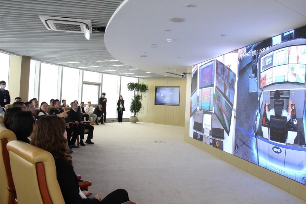 接著,實地參觀了洋山深水港四期自動化碼頭,觀看了宣傳片,在工作人員的專業(yè)講解下深入了解碼頭全流程自動化裝卸工作,觀摩作業(yè)現(xiàn)場,對四期的智能化程度有了直觀的認識,深感震撼:碼頭上幾乎空無一人,采用遠程操控雙小車橋吊,無人自動導引車在港區(qū)內(nèi)自如穿梭,通過碼頭上埋設的六萬多枚磁釘進行定位和導航,全自動軌道吊靈活精準,提高堆場作業(yè)效率。各種自動化設備及其背后的智慧大腦“中國芯”ITOS系統(tǒng)一同實現(xiàn)了碼頭作業(yè)從傳統(tǒng)勞動密集型向自動化智能化的革命性轉變,大大減少了人工投入和碳排放,提高了港區(qū)作業(yè)效率。