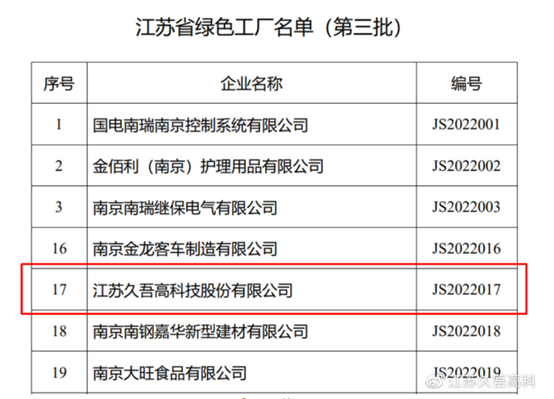 此次入選江蘇省綠色工廠,是對久吾高科長期堅持清潔生產、綠色發展的認可。未來,公司將繼續從完善管理體系、優化能源資源結構和提高科技創新能力等多方面著力,不斷提升綠色制造能力,逐步實現降本、降耗、提質、增效的綠色生產,持續推進公司綠色健康發展,為助力實現“碳達峰、碳中和”目標貢獻久吾力量!