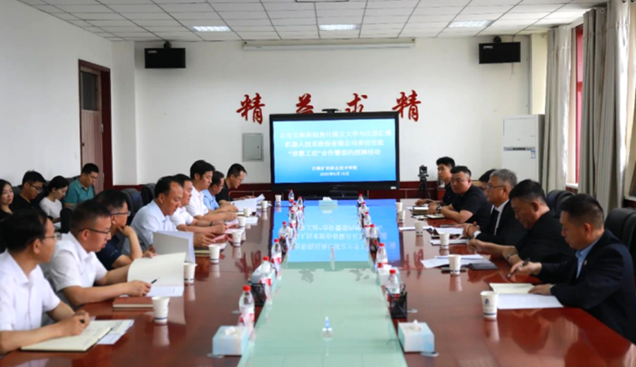 6 月 19 日,甘肅白銀傳來好消息 —— 匯博機器人、白銀礦冶職業技術學院與吉爾吉斯斯坦奧什國立大學,共同簽署 “培黎工坊” 合作協議,并揭牌 “智能制造新質生產力科研示范中心”。